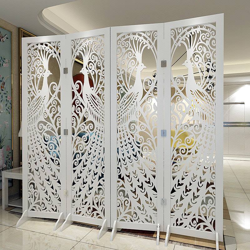 Bình phong vách ngăn giá rẻ hình Con Công được sản xuât bằng chất liệu nhựa compsoite cao cấp màu trắng lấy cảm hứng sáng tác từ sự ấn tượng đặc biệt với bộ lông đuôi sặc sỡ và lộng lẫy. Đôi chim công là biểu tượng Sự quyền lực, phú quý, giàu sang và thịnh vượng. Chim công còn là biểu tượng của cuộc sống gia đình, hôn nhân giàu có và sung túc. Chim công trở thành vật phong thủy, giúp điều hòa âm dương, đem lại không khí hòa thuận, yên ấm trong gia đình.